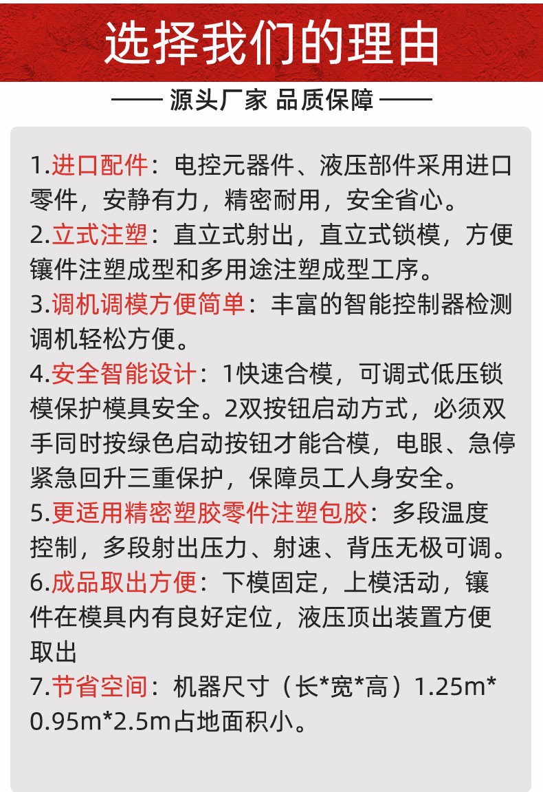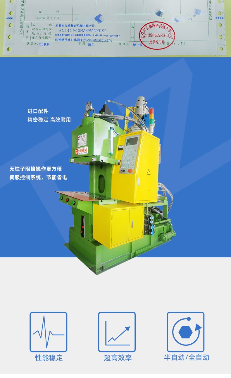 1.立式合模(mó),卧式射出,機體結(jié)構緊湊,射出有力(li),适合較🚶♀️大💃型鑲件(jiàn)成型。